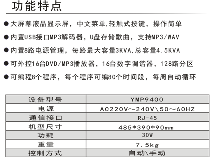 MP3 Digital Intelligent Programming Host YMP9400
